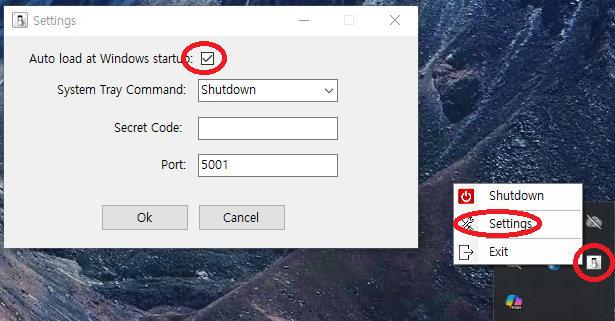 우측하단 작업 표시줄 창에 표시한 것과 같은 같은 아이콘이 나타나고, 우클릭해서 settings에 들어간 다음 체크박스에 체크하고 OK를 눌러 주자.