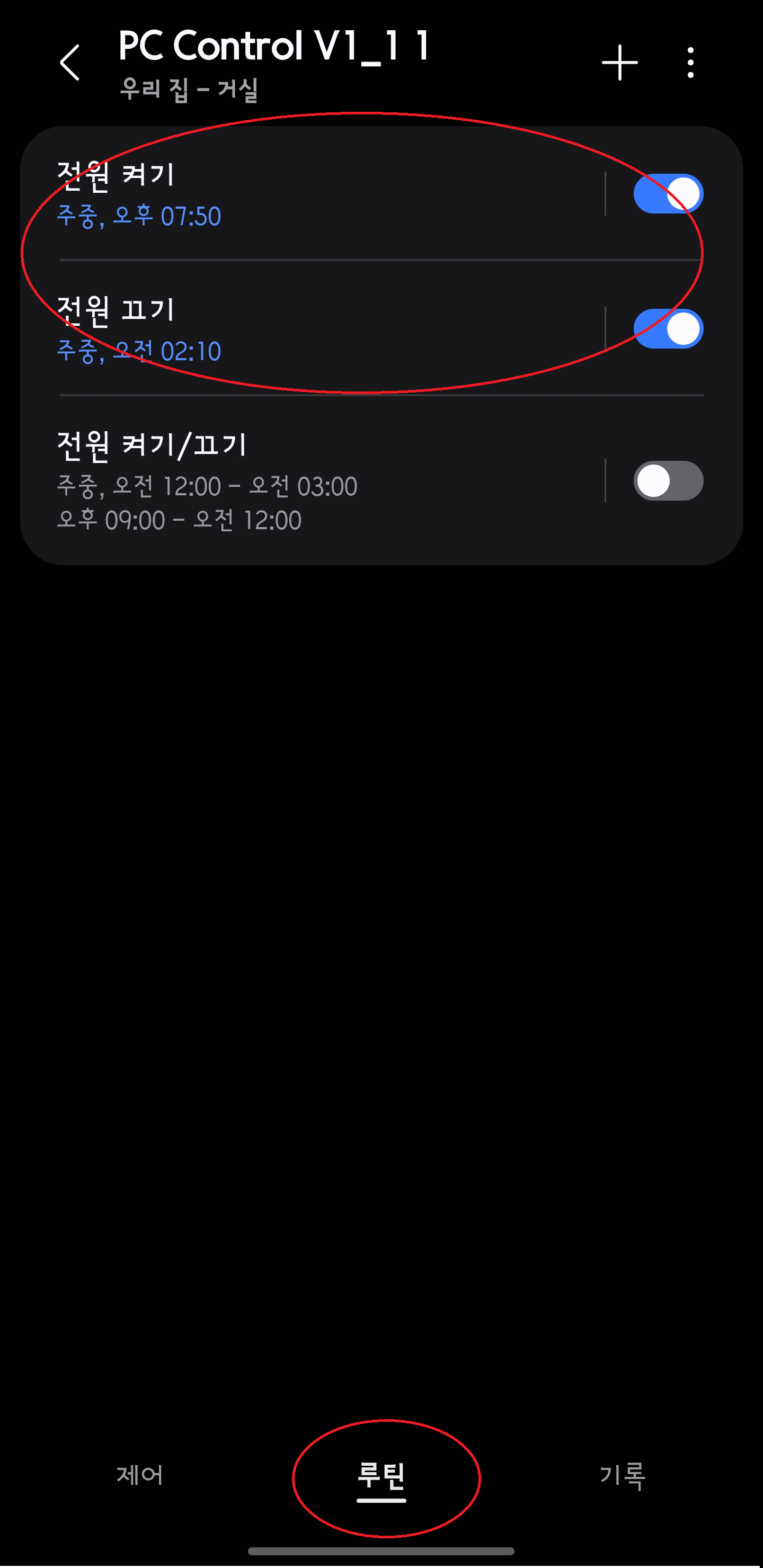 아래 루틴 탭에서 전원 켜기를 클릭해 원하는 시간에 켜지도록 설정해주면 된다!!!