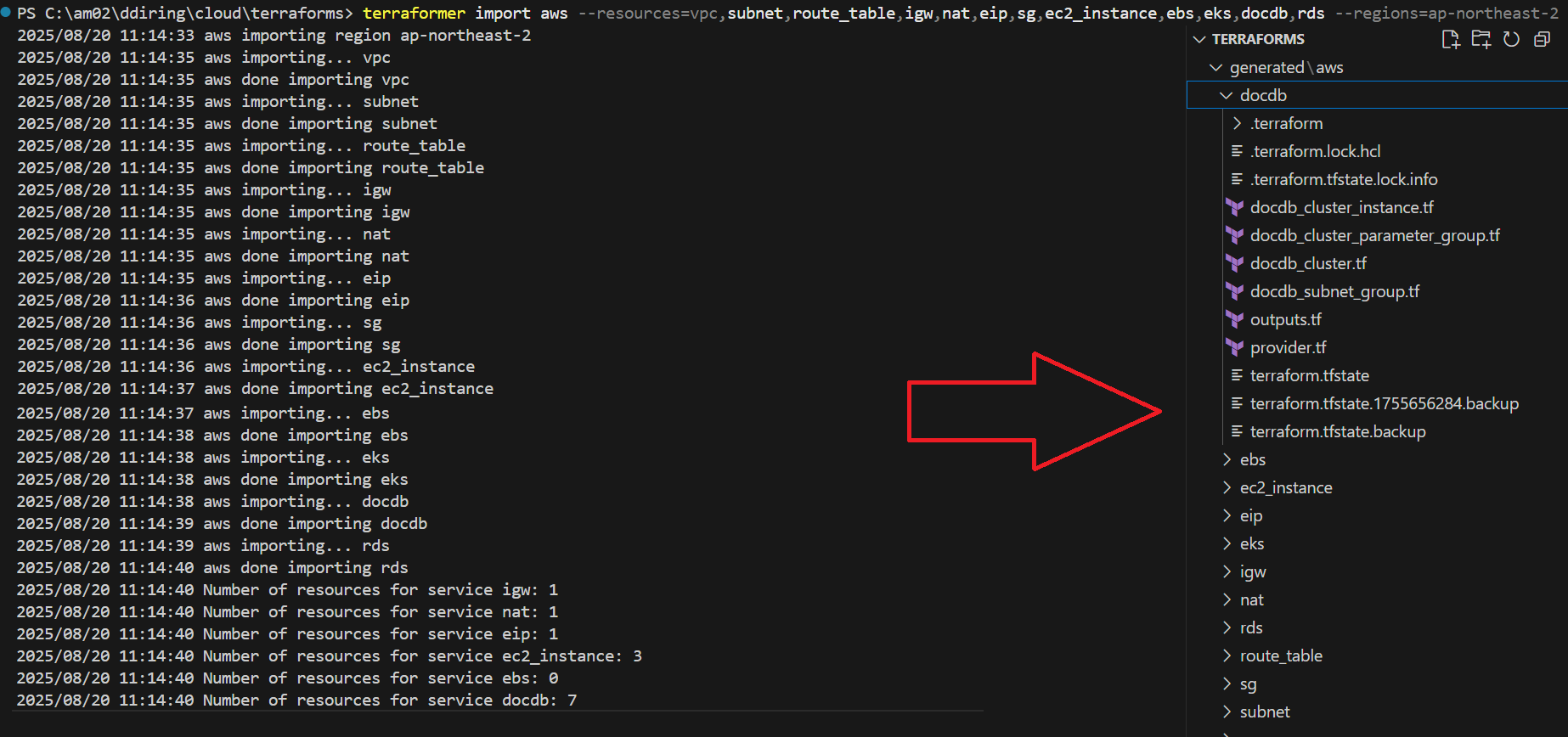 임포트가 완료되면 위 사진처럼 서비스별로 테라폼 파일이 폴더화돼서 나온다.