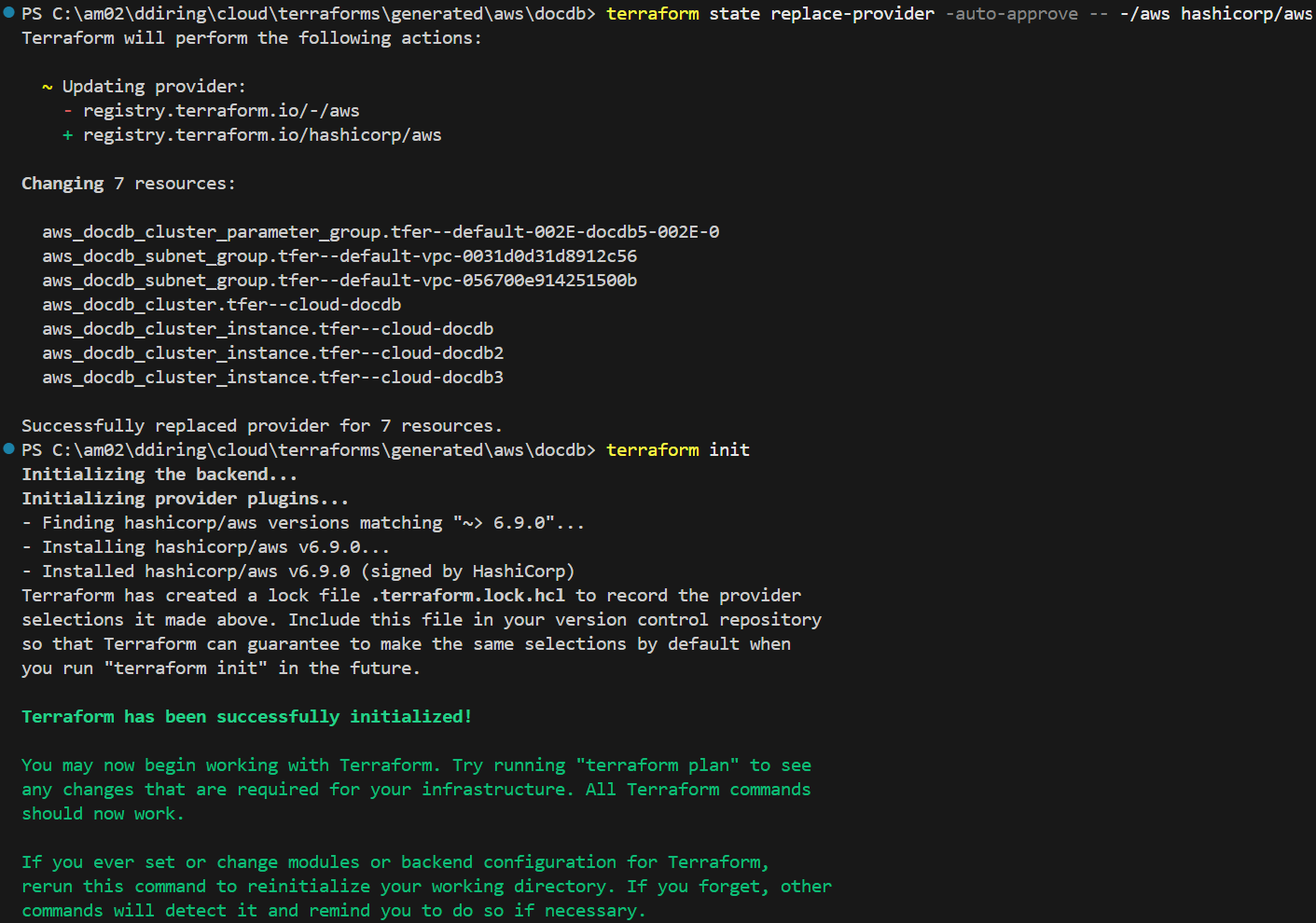 각 폴더에 들어가 terraform state replace-provider -auto-approve -- -/aws hashicorp/aws로 버그를 수정해 줘야 한다.