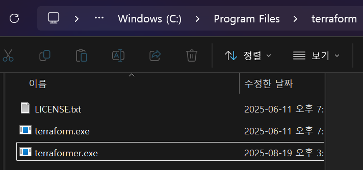 이 두 개를 받았으면 알기 쉬운 장소에 넣어주고(예시로 C:\Program files\Terraform)