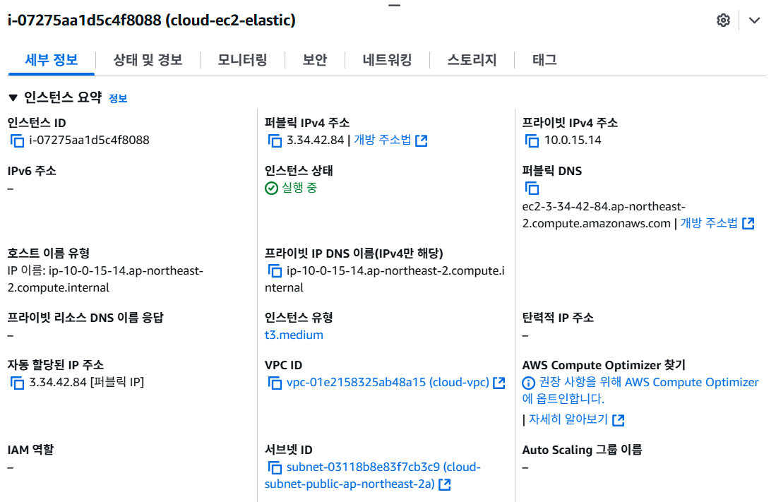 Elastic 특성상 시스템 자원을 많이 잡아먹기 때문에 인스턴스는 t3.medium